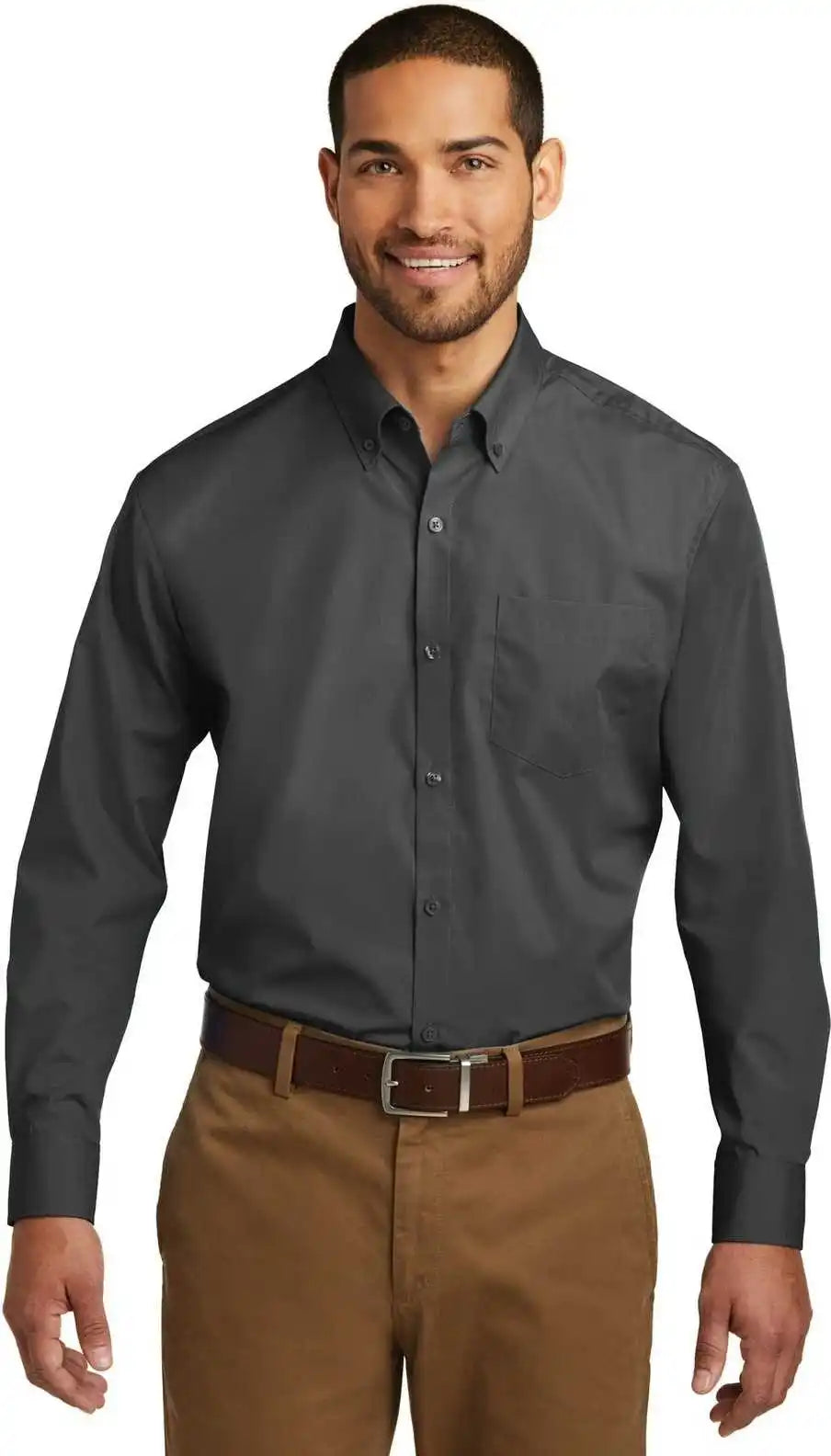 Port Authority W380 Slub Chambray Shirt - Gray