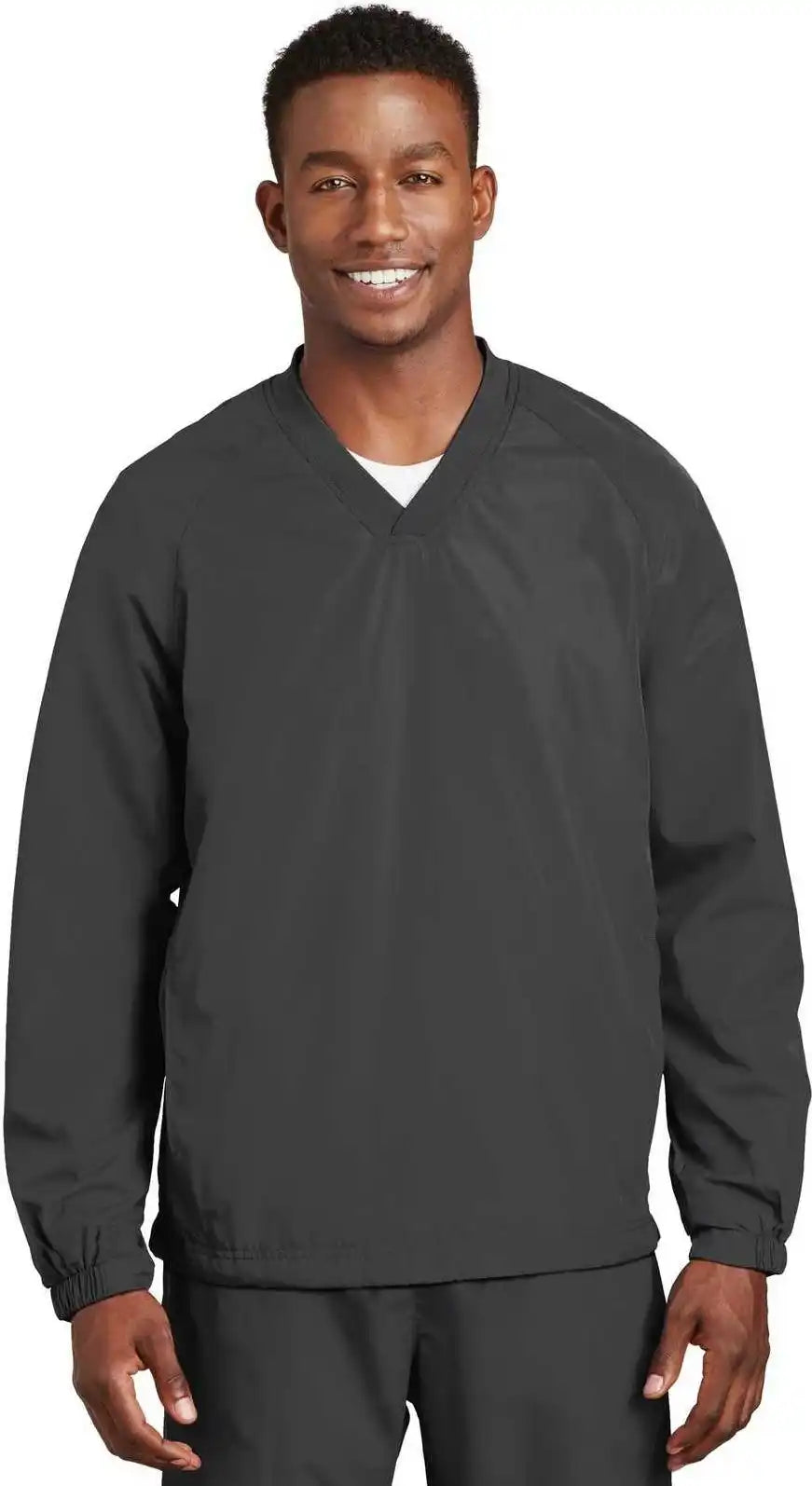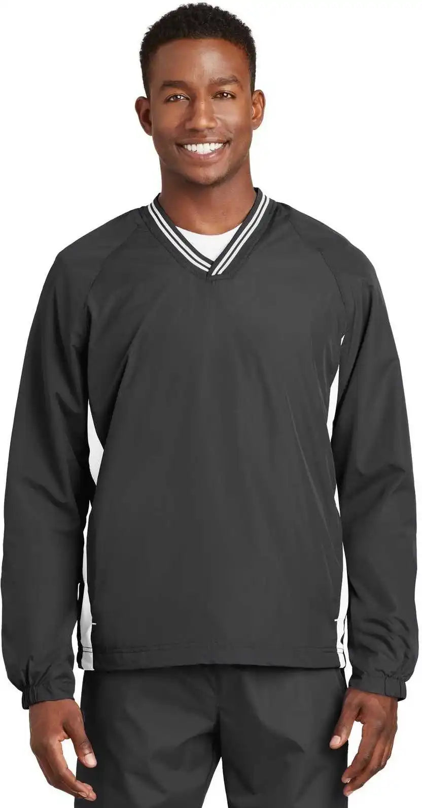 Sport-Tek JST72 V-Neck Raglan Wind Shirt - Black