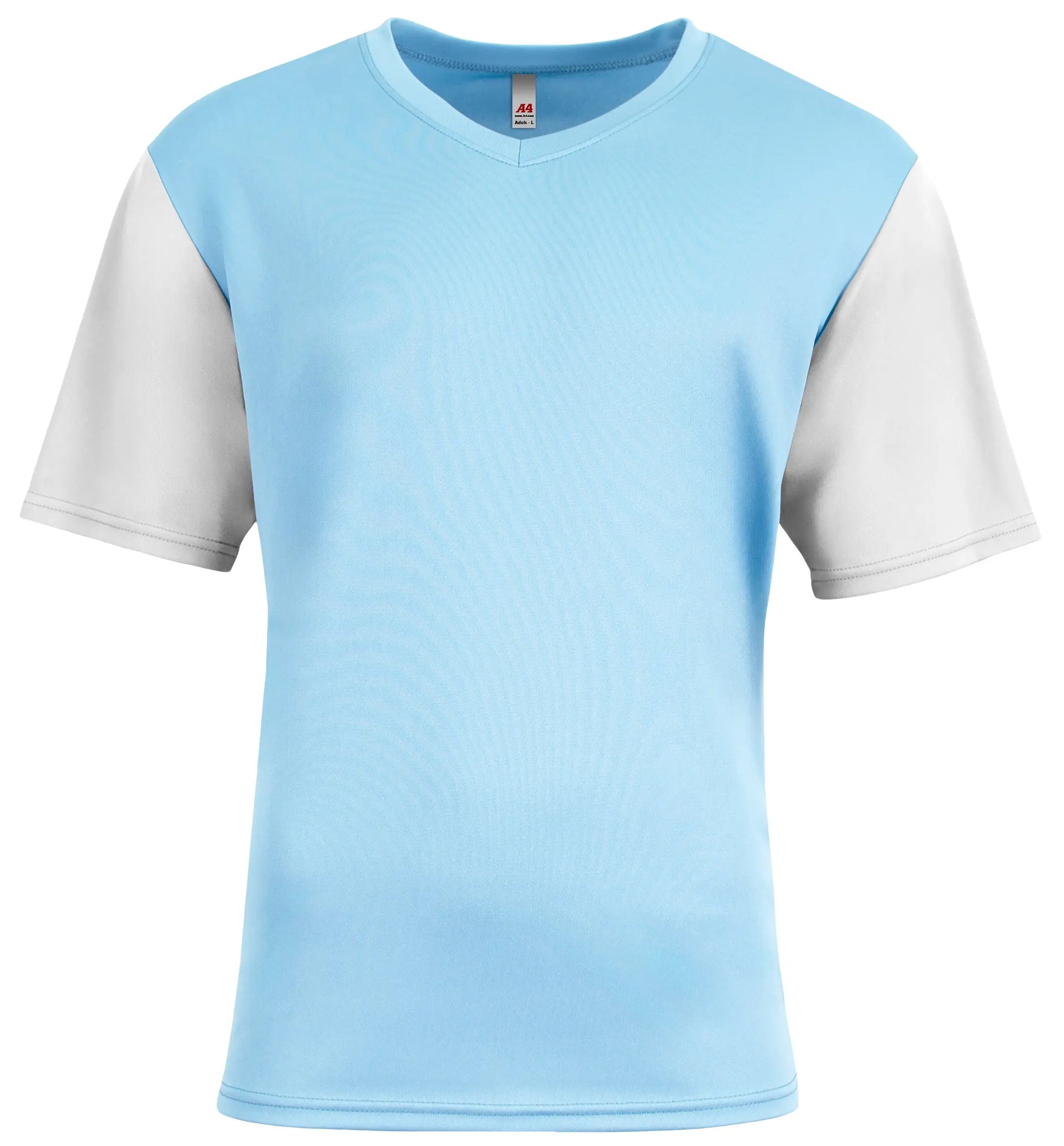 A4 N3541 Sprint Color Block V-Neck T-Shirt - Sky Blue White