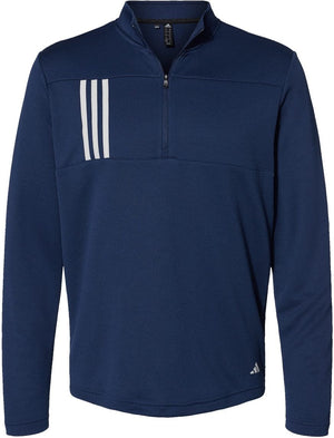 Adidas A482 3-Stripes Double Knit Quarter-Zip Pullover - Team Navy Blue Grey Two
