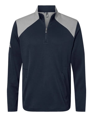 Adidas A532 Textured Mixed Media Quarter-Zip Pullover - Collegiate Navy Grey Three