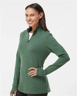 Adidas A555 Women's 3-Stripes Quarter-Zip Sweater - Green Oxide Melange