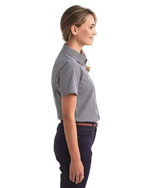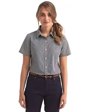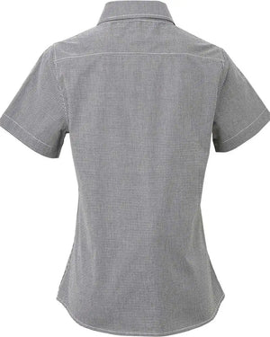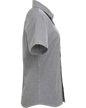 Artisan Collection by Reprime RP321 Women's Microcheck Gingham Short Sleeve Cotton Dress Shirt - Black White