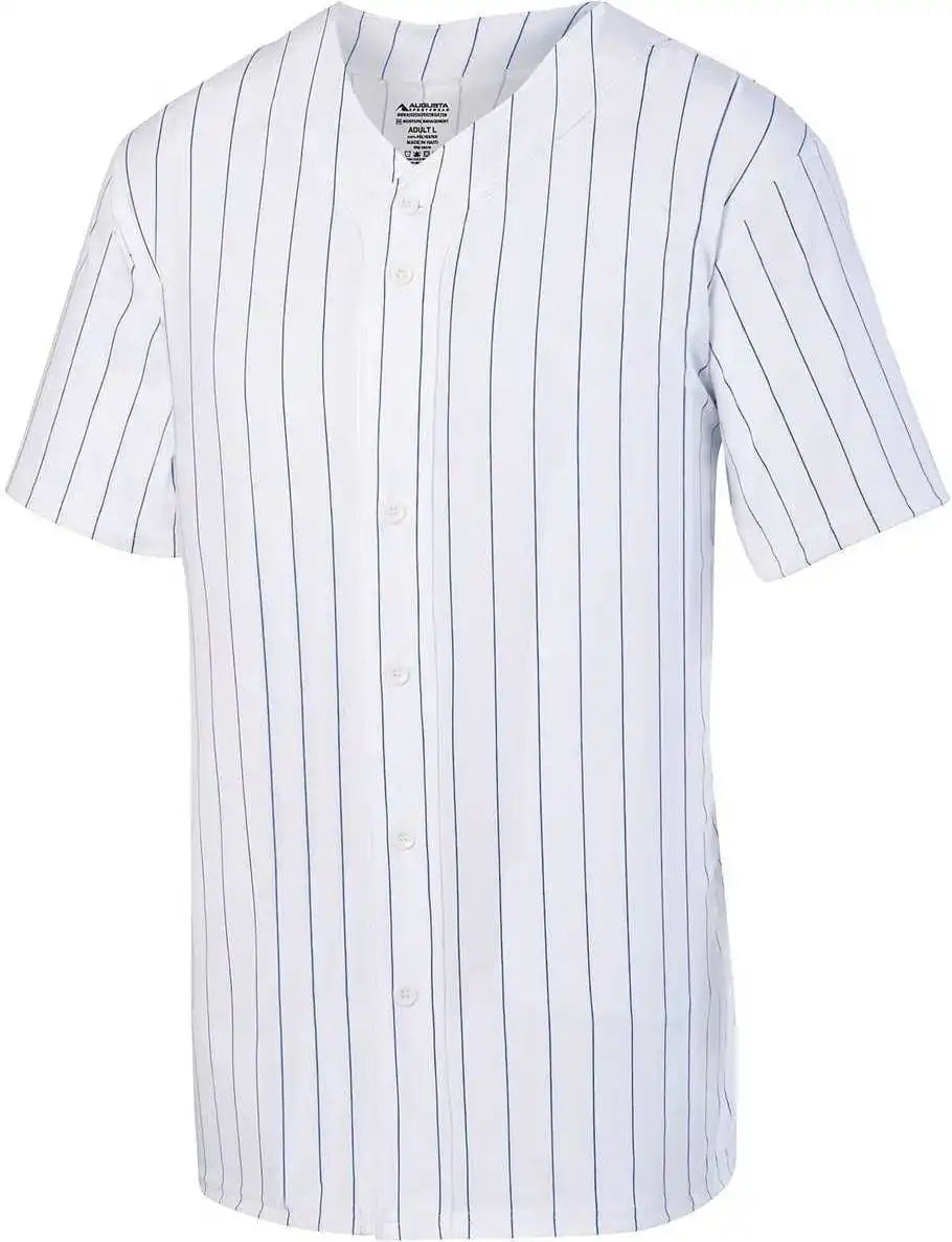 Augusta 1685 Pinstripe Full Button Baseball Jersey - White Royal