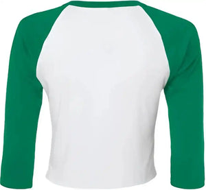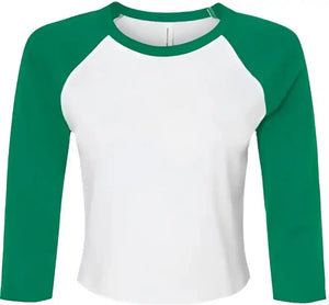 Bella + Canvas 1200 Women's Micro Rib 34 Raglan Sleeve Baby Tee - White Kelly