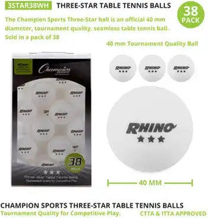 Champion Sports 3STR 3-Star Tournament Table Tennis Balls - 38 Pk
