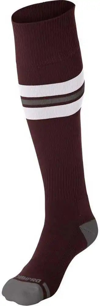 Champro AS3 Striped Baseball Knee High Socks - Maroon White Gray