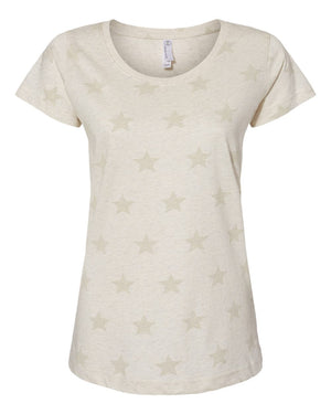 Code Five 3629 Women's Star Print Scoop Neck Tee - Natural Heather Star