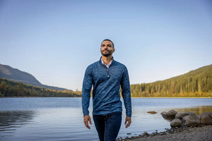Cutter & Buck BCK01081 Traverse Stretch Eco Camo Print Quarter Zip Mens Big and Tall Pullover Big & Tall - Navy Blue