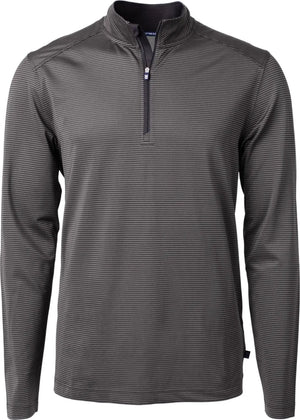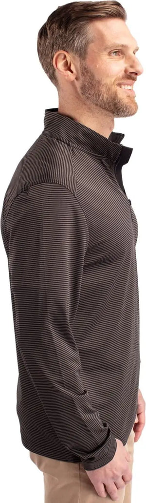 Cutter & Buck BCK01258 Virtue Eco Pique Micro Stripe Recycled Mens Big & Tall Quarter Zip Big & Tall - Black Elemental Gray
