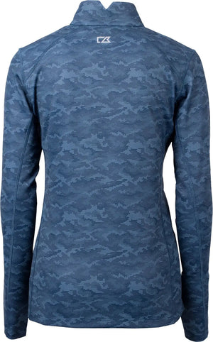 Cutter & Buck LCK00155 Traverse Stretch Eco Camo Print Quarter Zip Womens Pullover - Navy Blue
