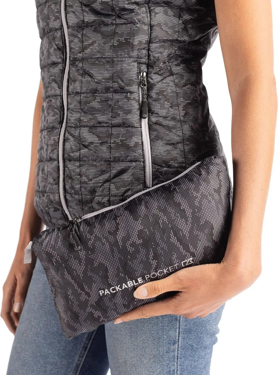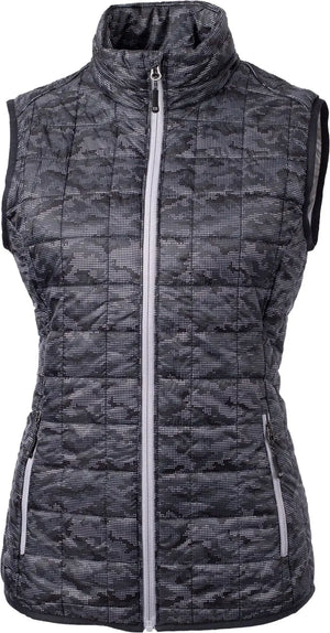 Cutter & Buck LCO00054 Rainier PrimaLoft® Womens Eco Insulated Full Zip Printed Puffer Vest - Black