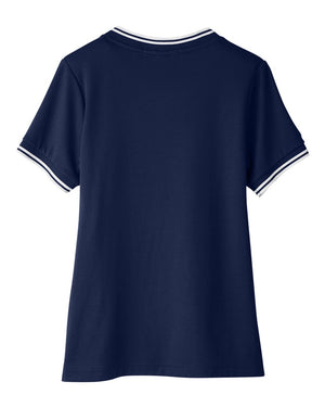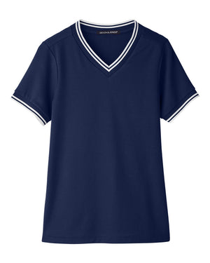 Devon & Jones DG20CW Women's CrownLux Performance® Plaited Tipped V-Neck Shirt - Navy White