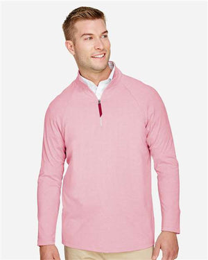 Devon & Jones DG480 Men's CrownLux Performance® Clubhouse Micro-Stripe Quarter-Zip Pullover - Red