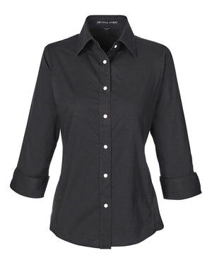 Devon & Jones DP625W Women's Perfect Fit Three-Quarter Sleeve Stretch Poplin Dress Shirt - Black