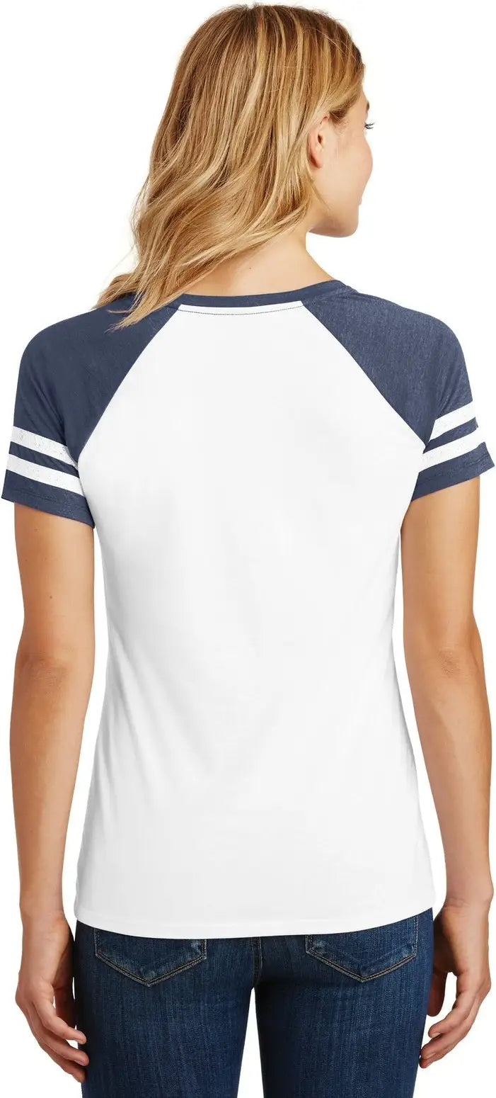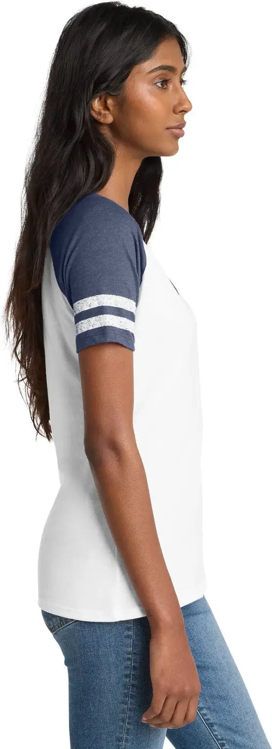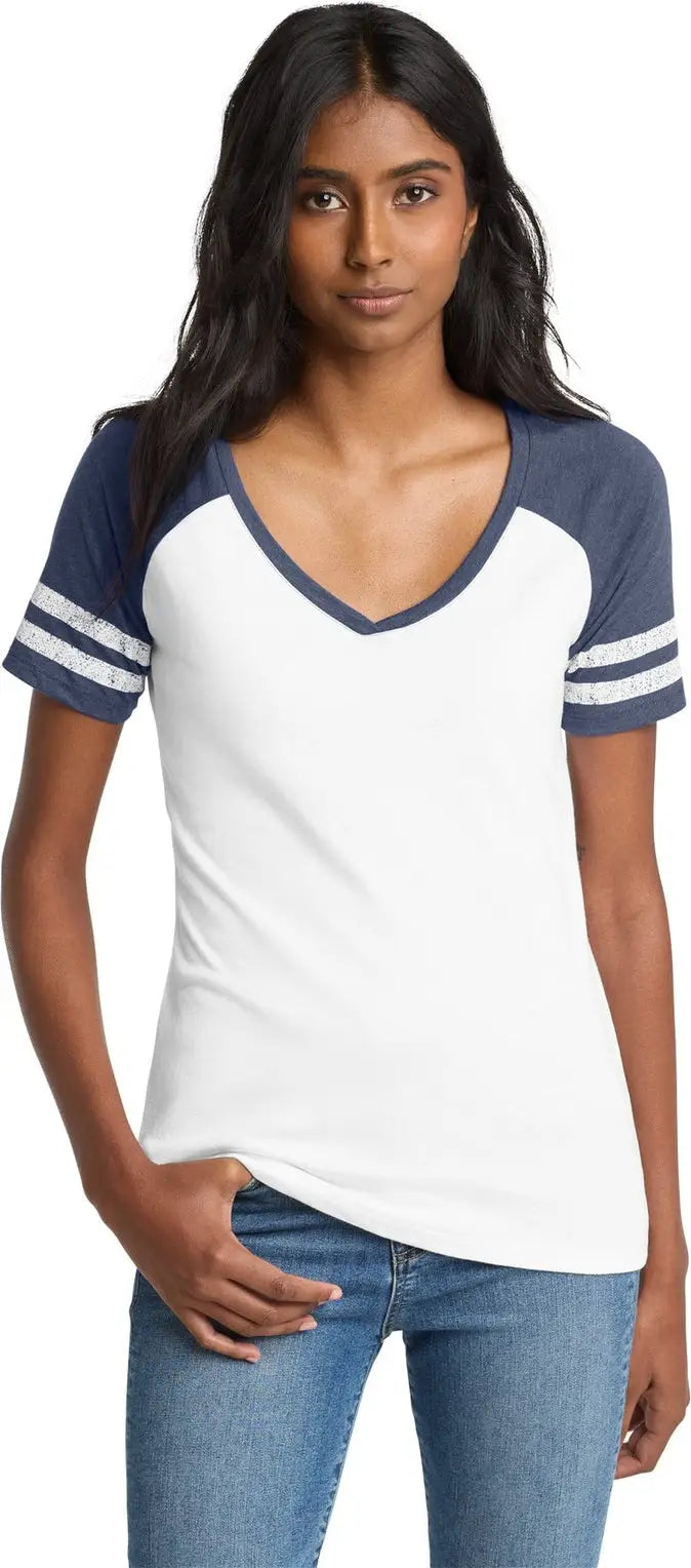 District DM476 Women's Game V-Neck Tee - White Heathered True Navy