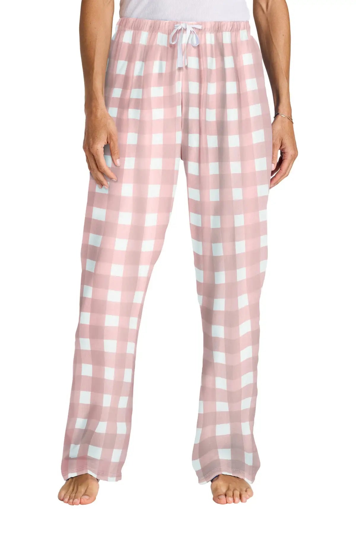 District DT2800 Women's Flannel Plaid Pant - Light Pink White Buffalo Check