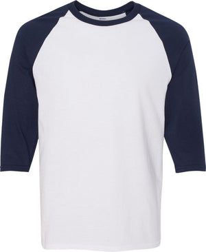 Gildan 5700 Heavy Cotton™ Raglan Three-Quarter Sleeve T-Shirt - White Navy