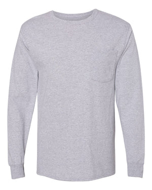Hanes W120 Workwear Long Sleeve Pocket T-Shirt - Light Steel