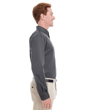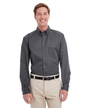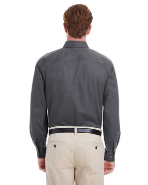 Harriton M581 Men's Foundation 100% Cotton Long-Sleeve Twill Shirt withTeflon - Dark Charcoal