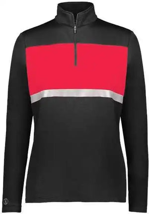 Holloway 222791 Women's Prism Bold Quarter-Zip Pullover - Black Scarlet