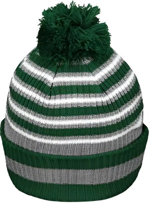 Holloway 223815 8 1/2" Spirit Pom Beanie - Dark Green Heather Gray White