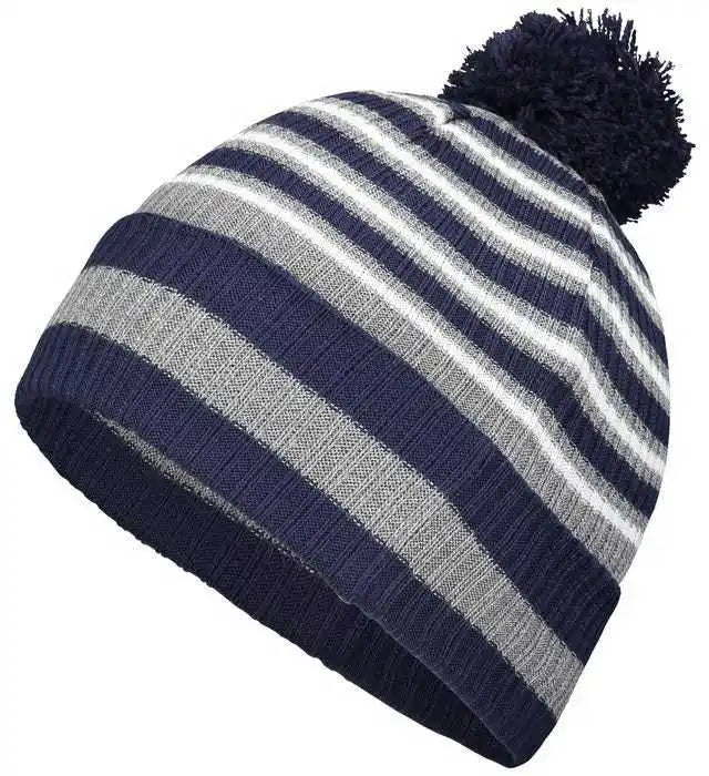 Holloway 223815 8 1/2" Spirit Pom Beanie - Navy Heather Gray White