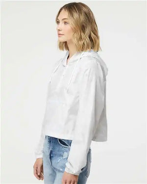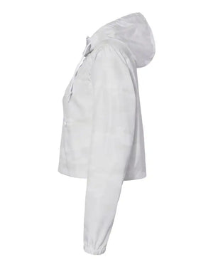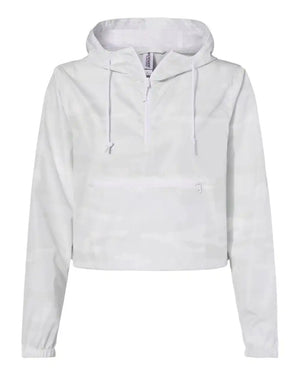 Independent Trading Co. EXP64CRP Women's Lightweight Quarter-Zip Pullover Crop Windbreaker - White Camo