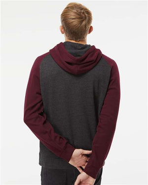 Independent Trading Co. IND40RP Raglan Hooded Sweatshirt - Charcoal Heather Burgundy Heather