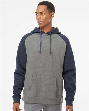 Independent Trading Co. IND40RP Raglan Hooded Sweatshirt - Gunmetal Heather Classic Navy Heather