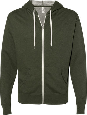Independent Trading Co. PRM90HTZ Heathered French Terry Full-Zip Hooded Sweatshirt - Olive Heather