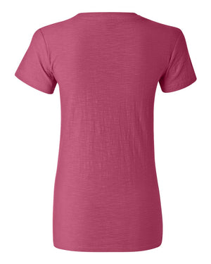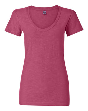 J. America 8169 Women's V-Neck Slub T-Shirt - Wildberry