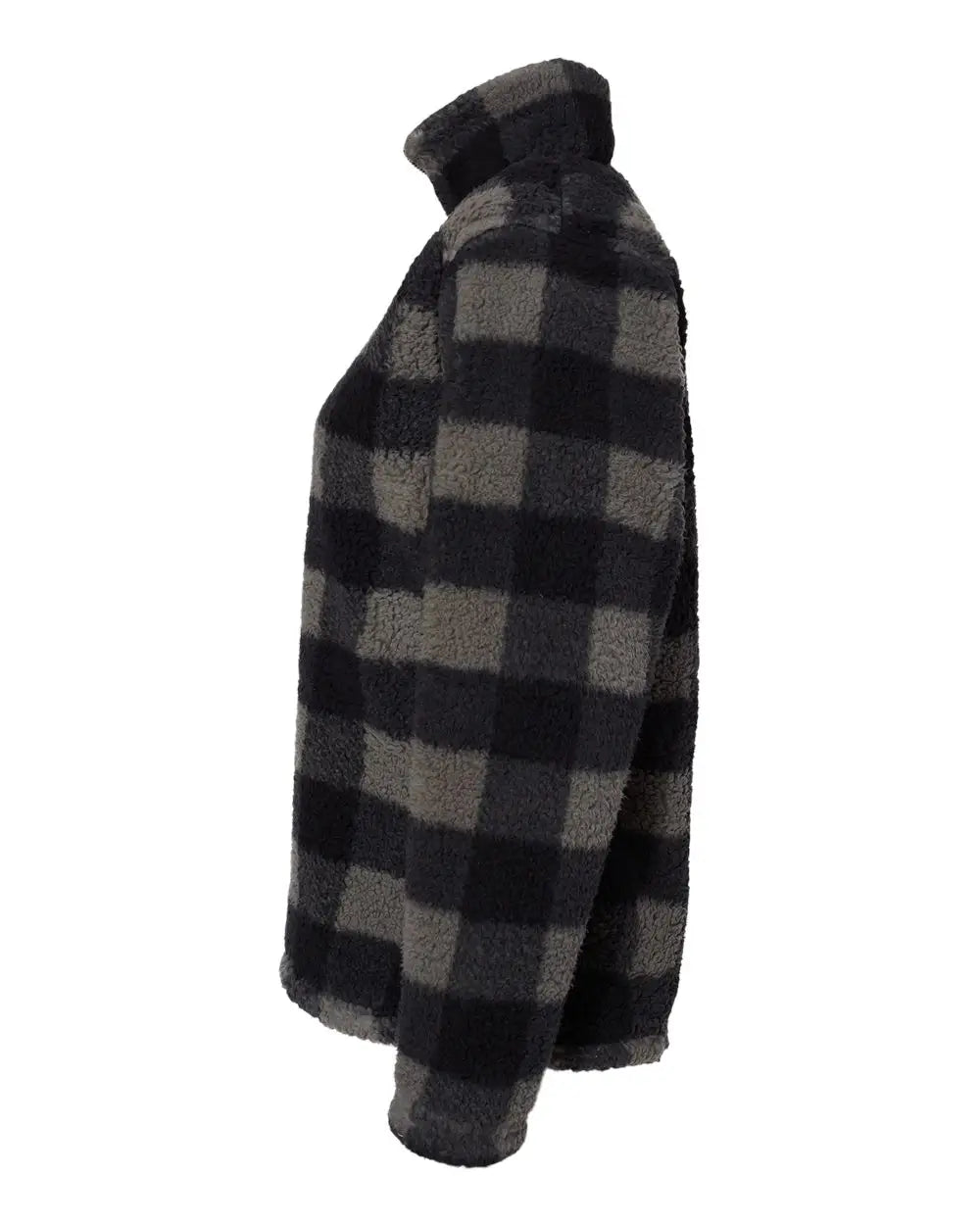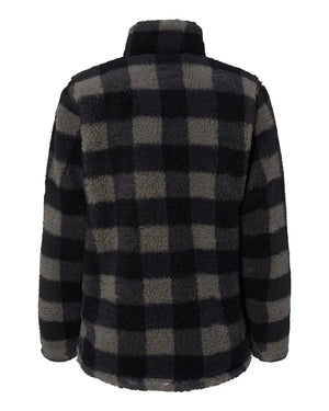J. America 8451 Women’s Epic Sherpa Quarter-Zip Pullover - Black Charcoal Buffalo