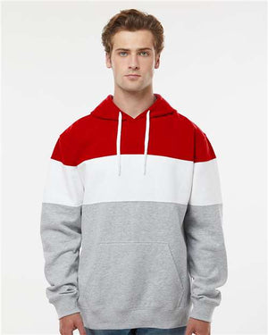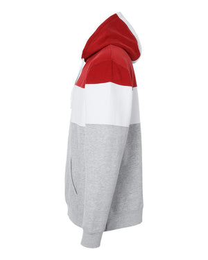 J. America 8644 Varsity Fleece Colorblocked Hooded Sweatshirt - Red Oxford