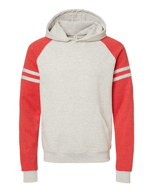JERZEES 97CR Nublend® Varsity Colorblocked Raglan Hooded Sweatshirt - Oatmeal Heather Fiery Red Heather