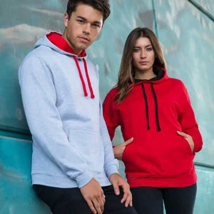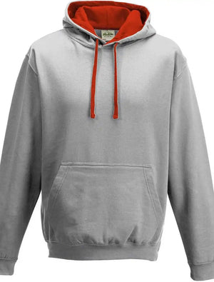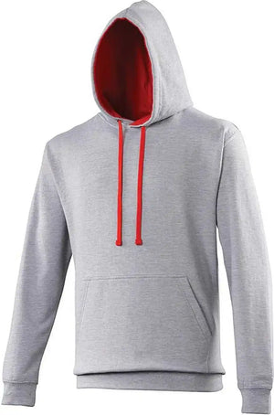 Just Hoods JHA003 Varsity Contrast Hoodie - Heather Gray Fire Red