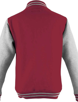 Just Hoods JHA043 Letterman Jacket - Fire Red Heather Gray