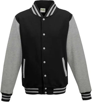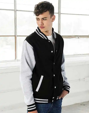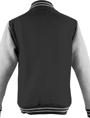 Just Hoods JHA043 Letterman Jacket - Jet Black Heather Gray
