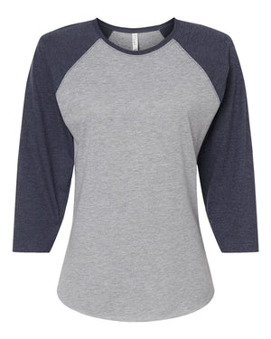 LAT 3530 Women's Baseball Fine Jersey Three-Quarter Sleeve Tee - Vintage Heather Vintage Navy