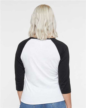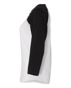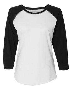 LAT 3530 Women's Baseball Fine Jersey Three-Quarter Sleeve Tee - White Solid Black
