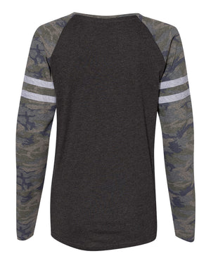 LAT 3534 Women's Fine Jersey Mash Up Long Sleeve T-Shirt - Vintage Smoke Vintage Camo