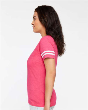 LAT 3537 Women's Football V-Neck Fine Jersey Tee - Vintage Hot Pink White