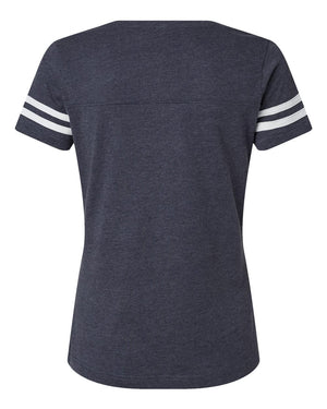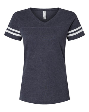 LAT 3537 Women's Football V-Neck Fine Jersey Tee - Vintage Navy White