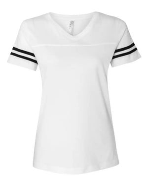 LAT 3537 Women's Football V-Neck Fine Jersey Tee - White Solid Black