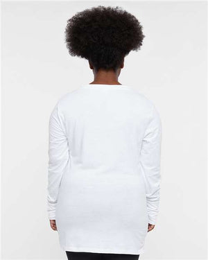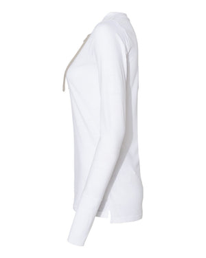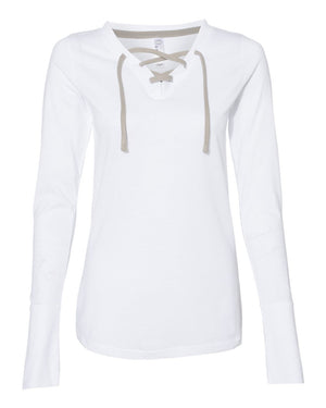 LAT 3538 Women's Fine Jersey Lace-Up Long Sleeve T-Shirt - Blended White Titanium