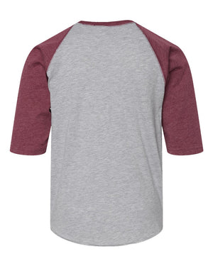 LAT 6130 Youth Baseball Fine Jersey Three-Quarter Sleeve Tee - Vintage Heather Vintage Burgundy