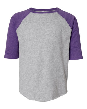LAT 6130 Youth Baseball Fine Jersey Three-Quarter Sleeve Tee - Vintage Heather Vintage Purple