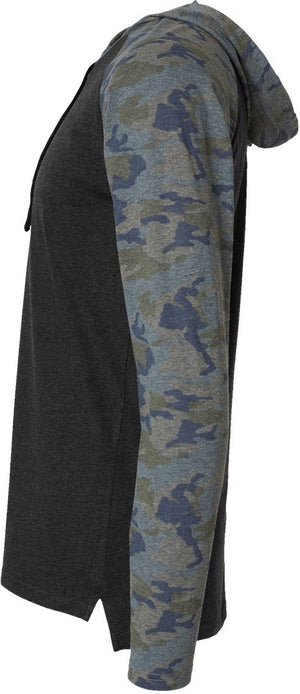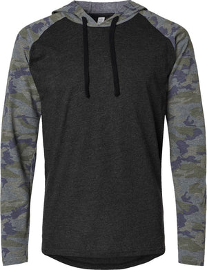 LAT 6917 Fine Jersey Hooded Long Sleeve Raglan T-Shirt - Vintage Smoke Vintage Camo Black