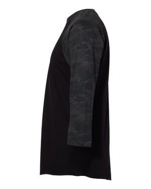 LAT 6930 Baseball Fine Jersey Three-Quarter Sleeve Tee - Black Storm Camo