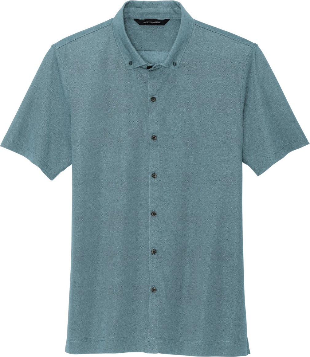 Mercer+Mettle MM1006 Stretch Pique Full-Button Polo - Parisian Blue Heather